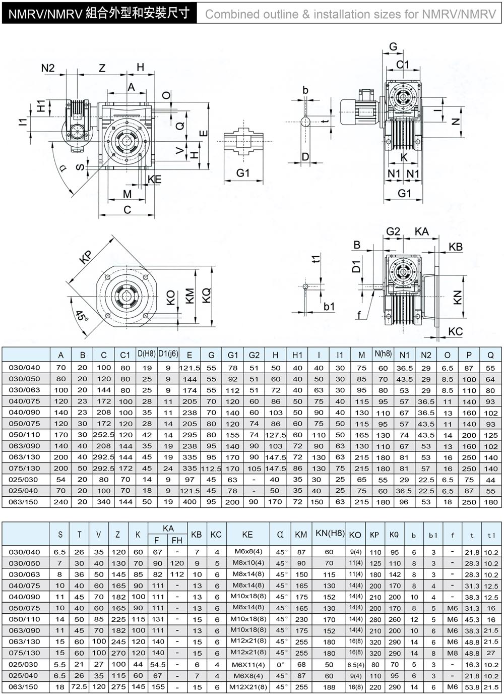 双蜗轮减速器组合选型技术数据表