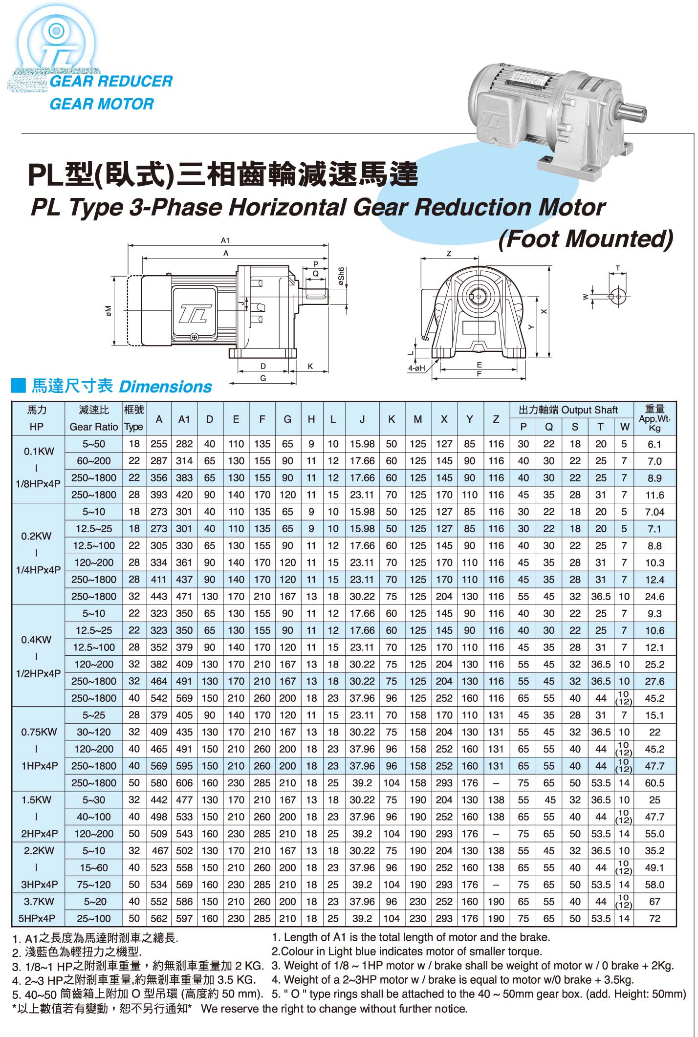 PL型(卧式)三相齿轮减速马达产品图片