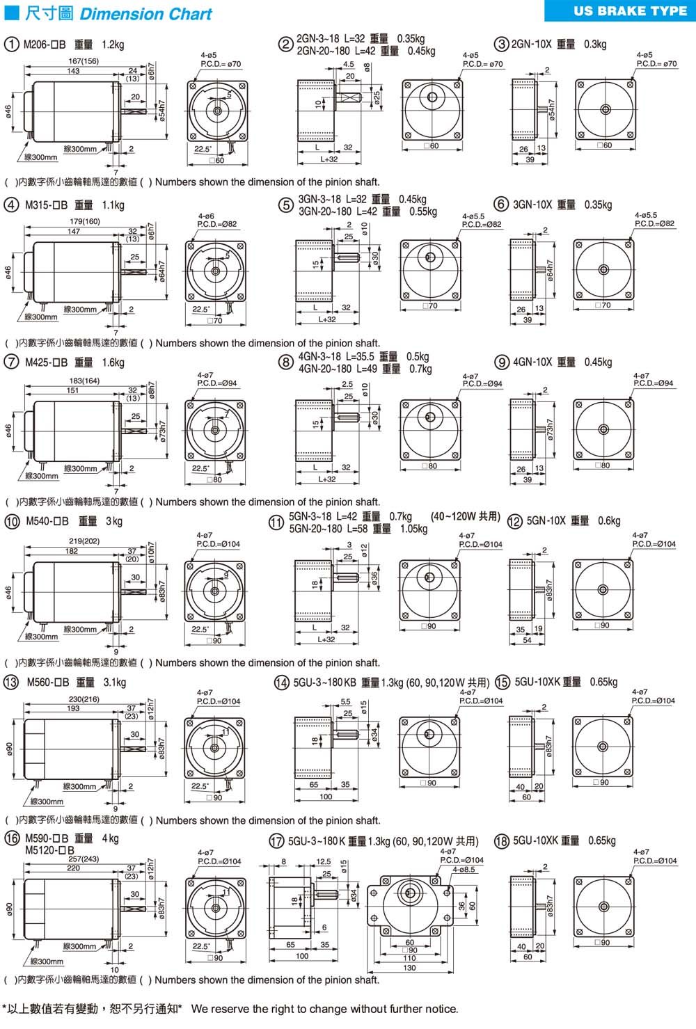单相交流无段变速附电磁刹车马达选型技术数据表