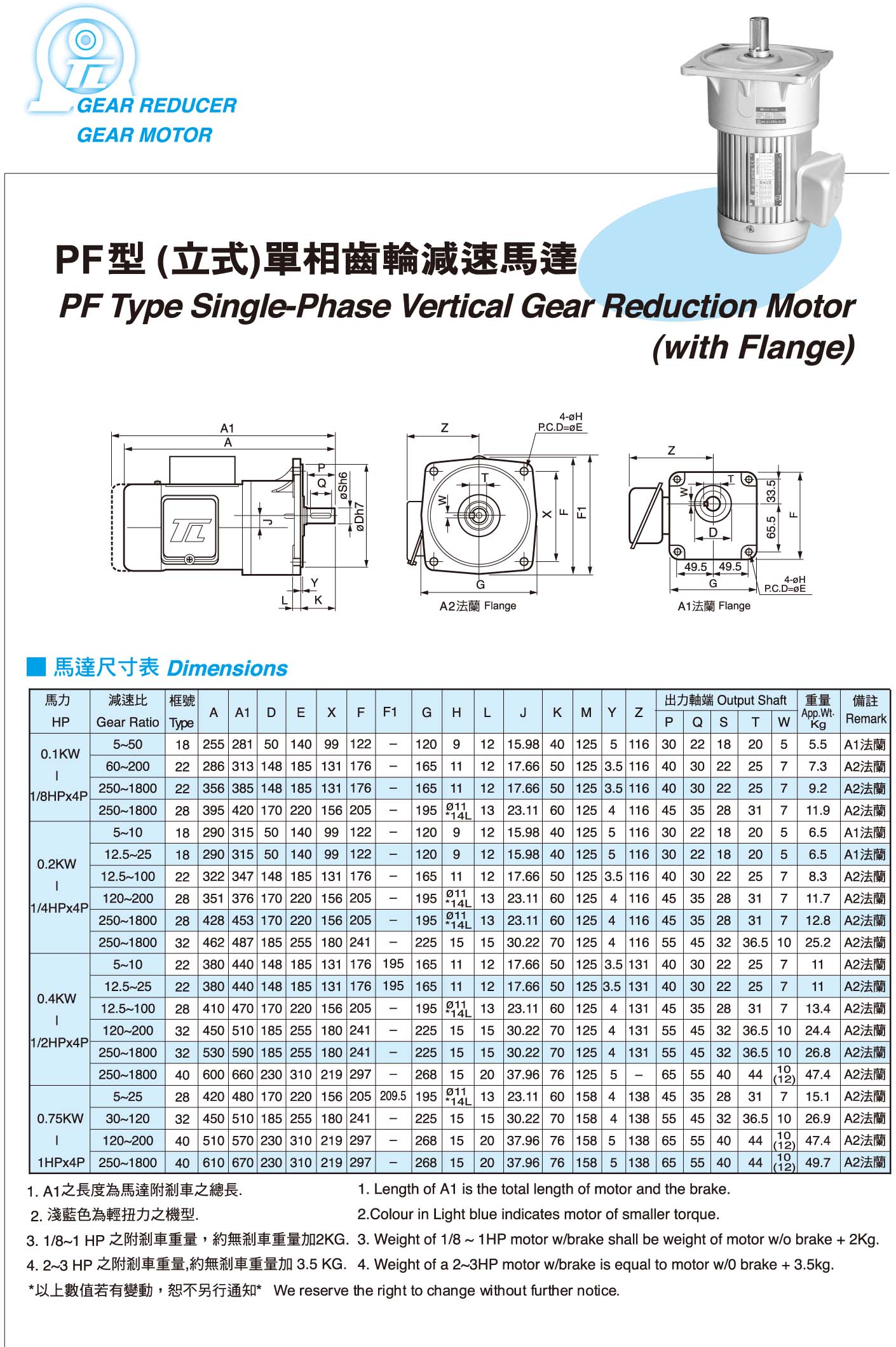 PF型(立式)单相齿轮减速马达产品图片