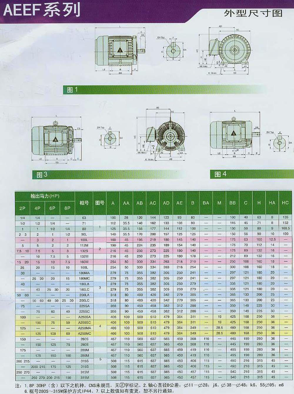 低压三相感应电动机选型技术数据表