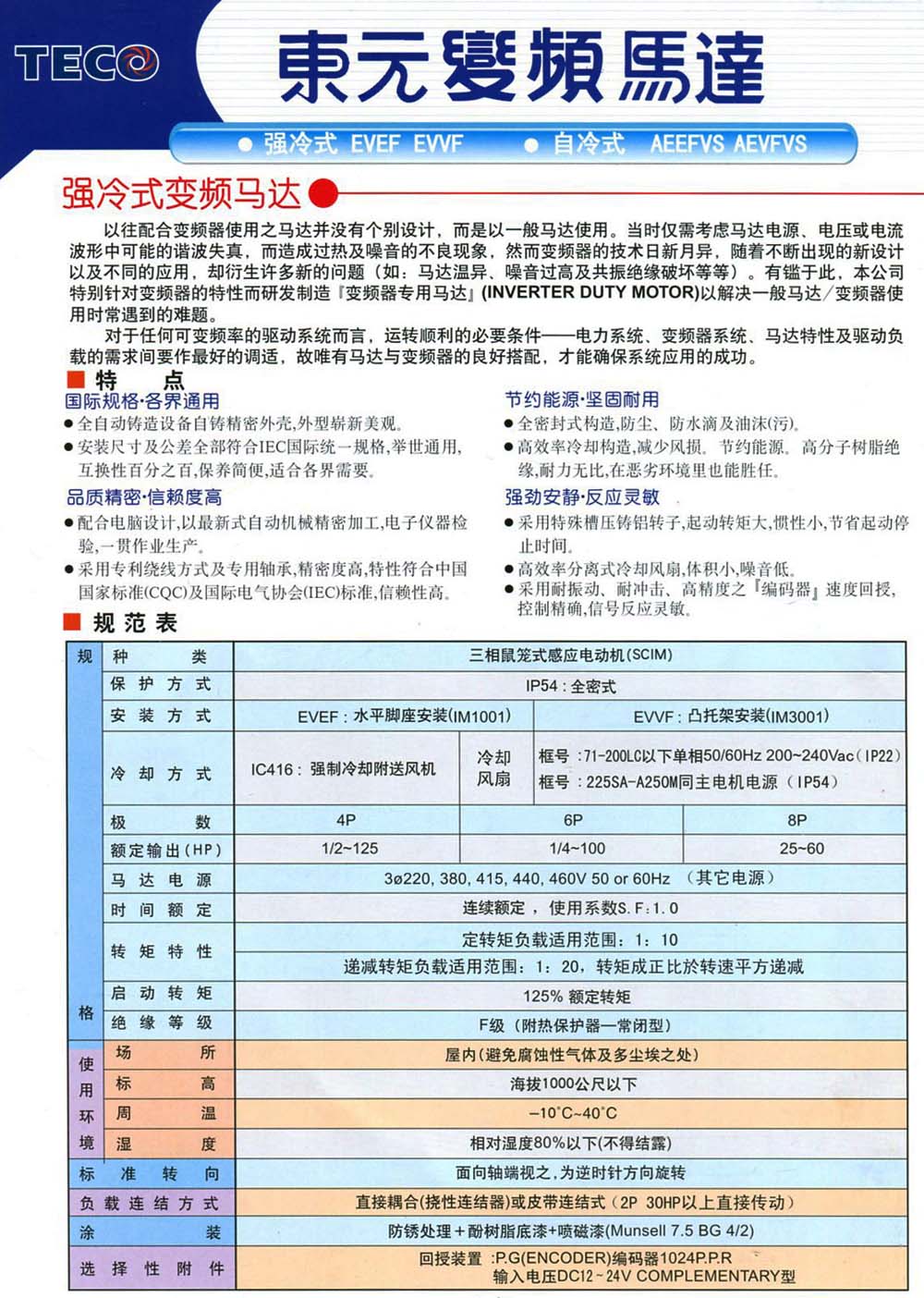 强冷式变频马达选型技术数据表